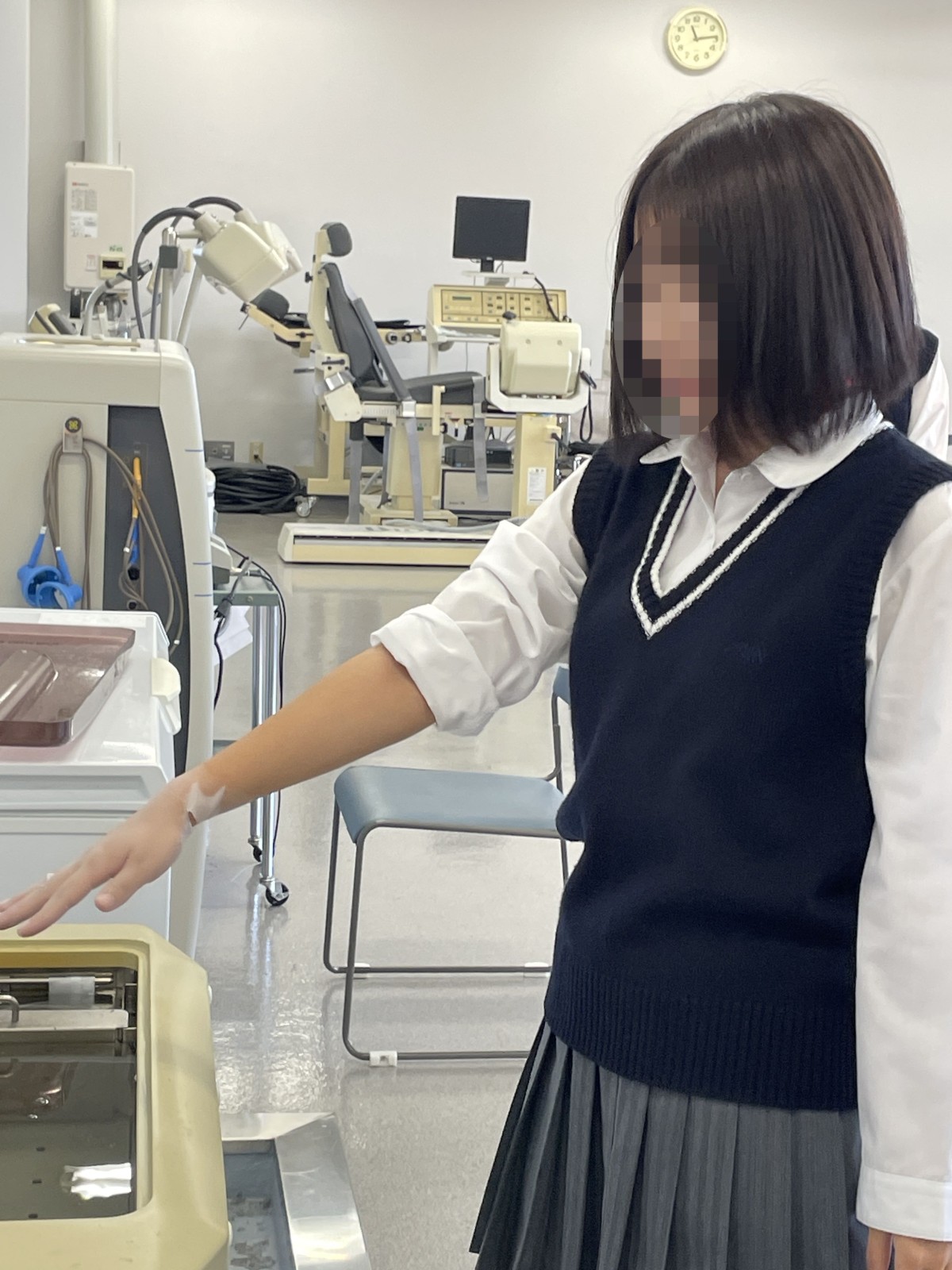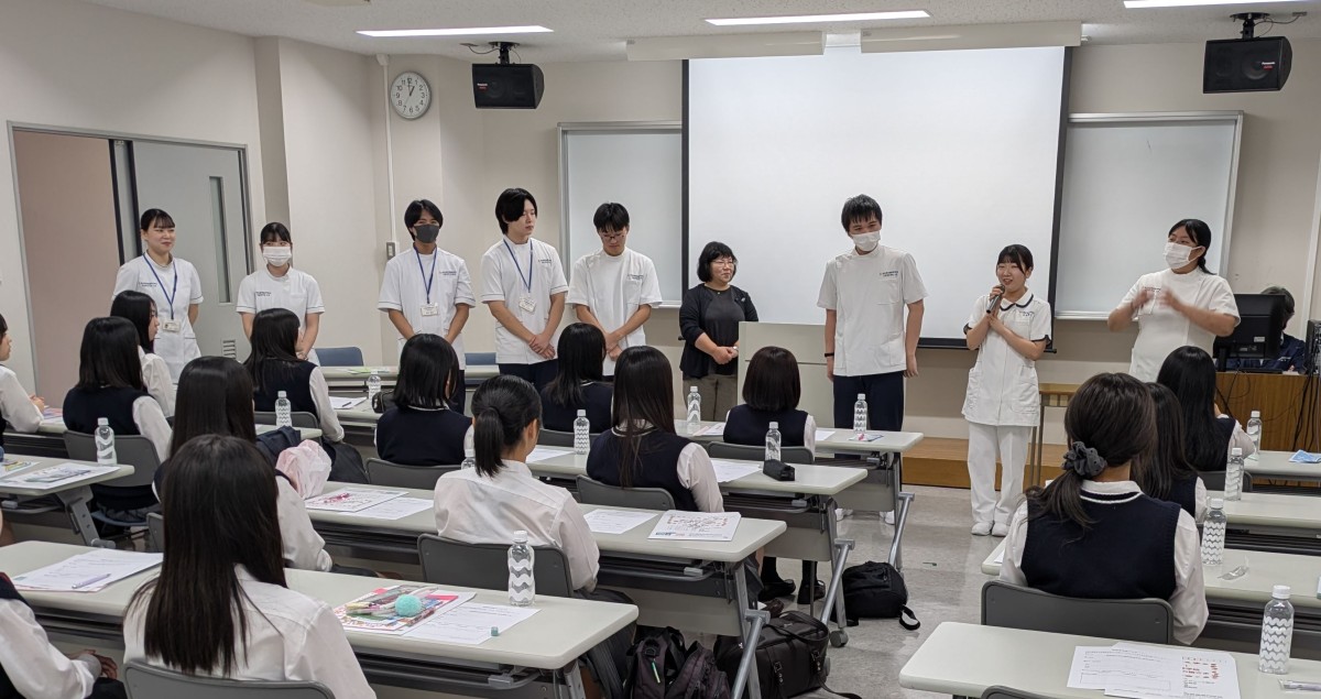 理学療法学科・作業療法学科・看護学科で演習体験や、チーム医療教育の紹介を行いました。