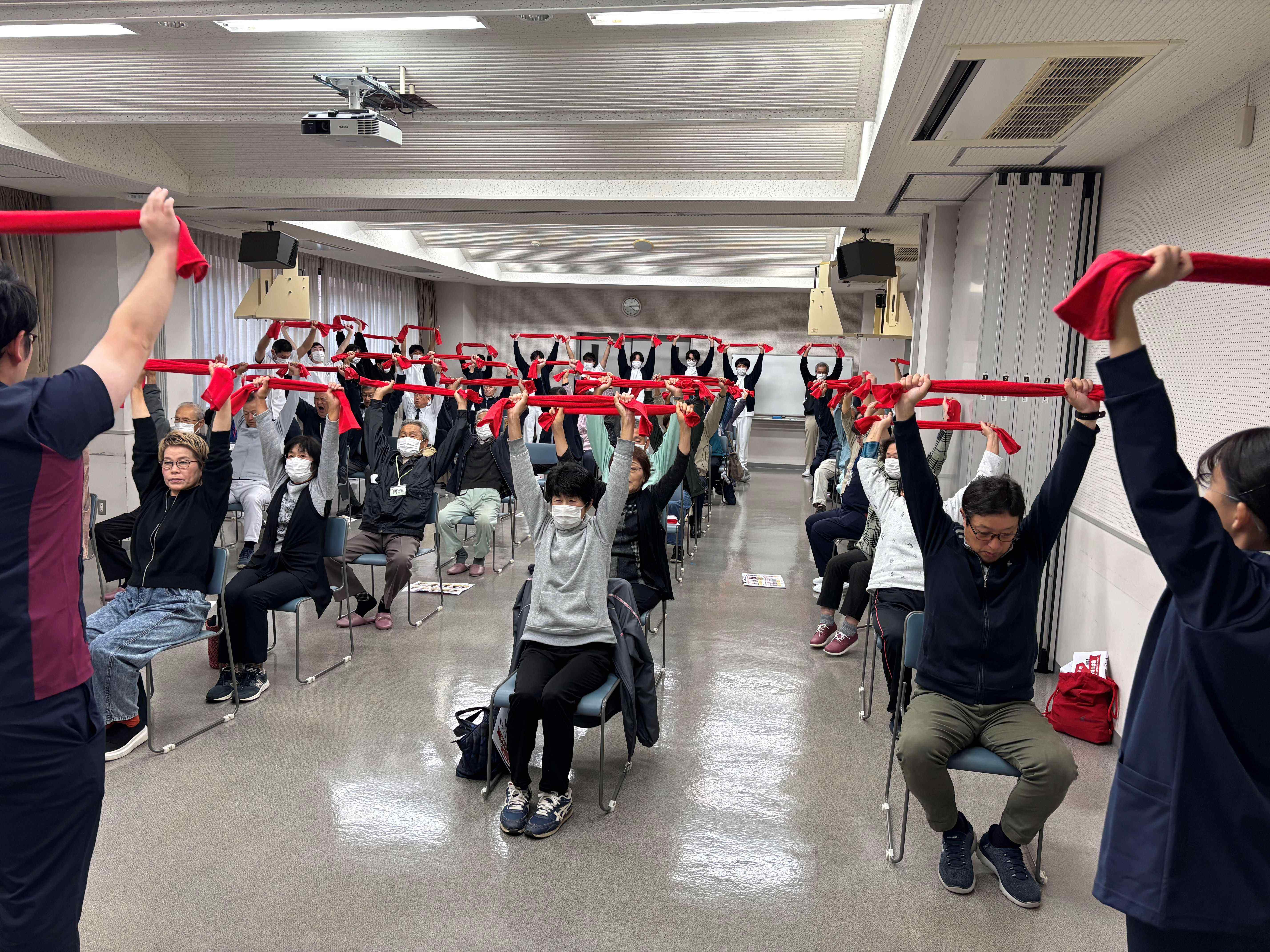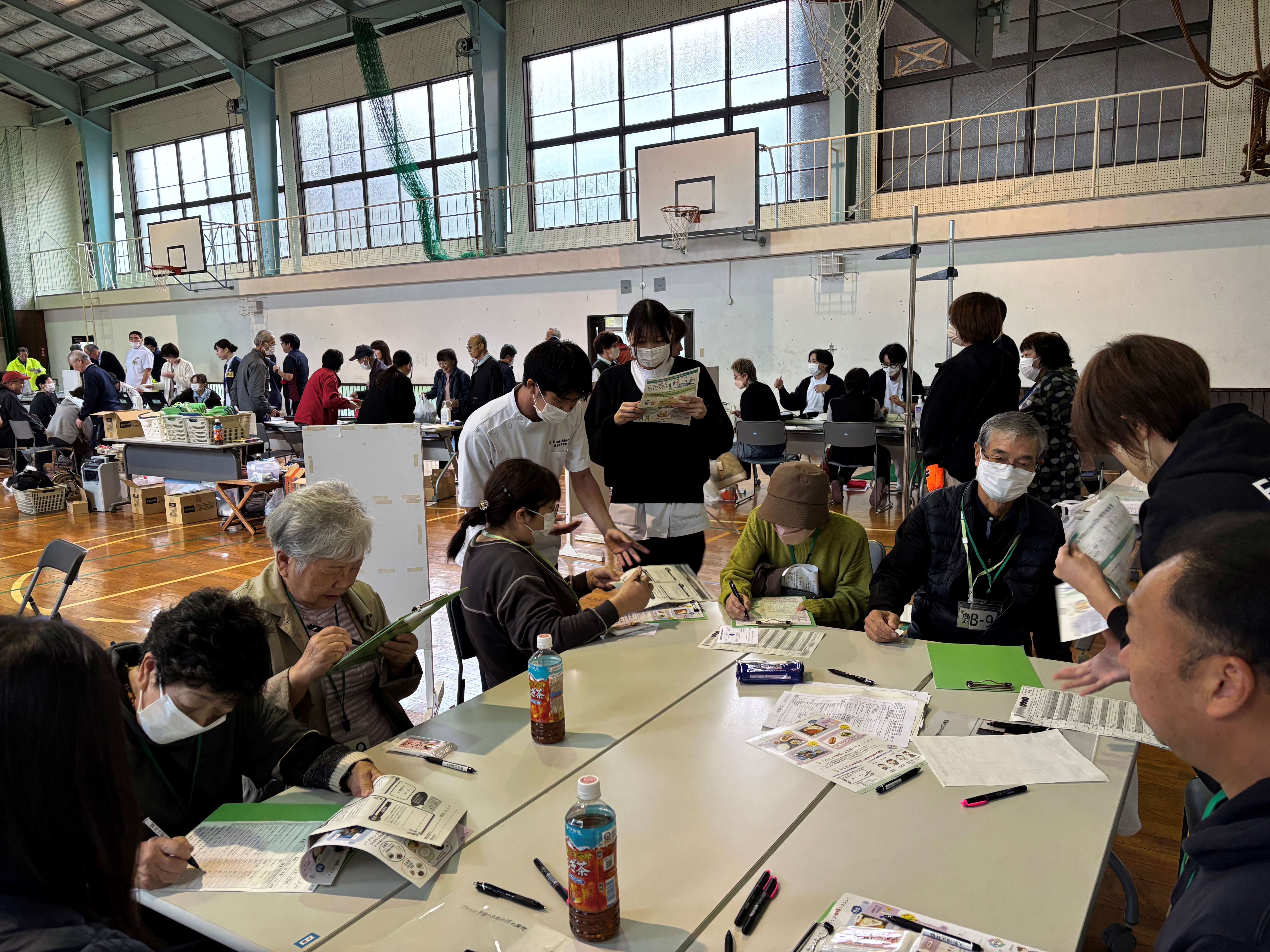 当日はタオル体操、フレイル測定会、ニュースポーツ体験、交通安全コーナー、eスポーツ、地域の皆さまによる展示コーナーやふれあい市場(新鮮野菜や名産品)、ガラポン抽選会など、多彩な催しが行われました。