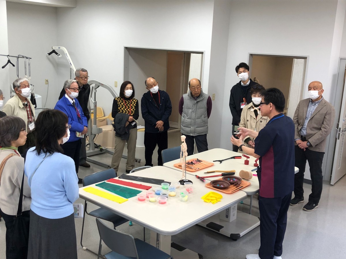 理学療法士・作業療法士・看護師の役割やチーム医療について説明した後、各学科での体験を行っていただきました。