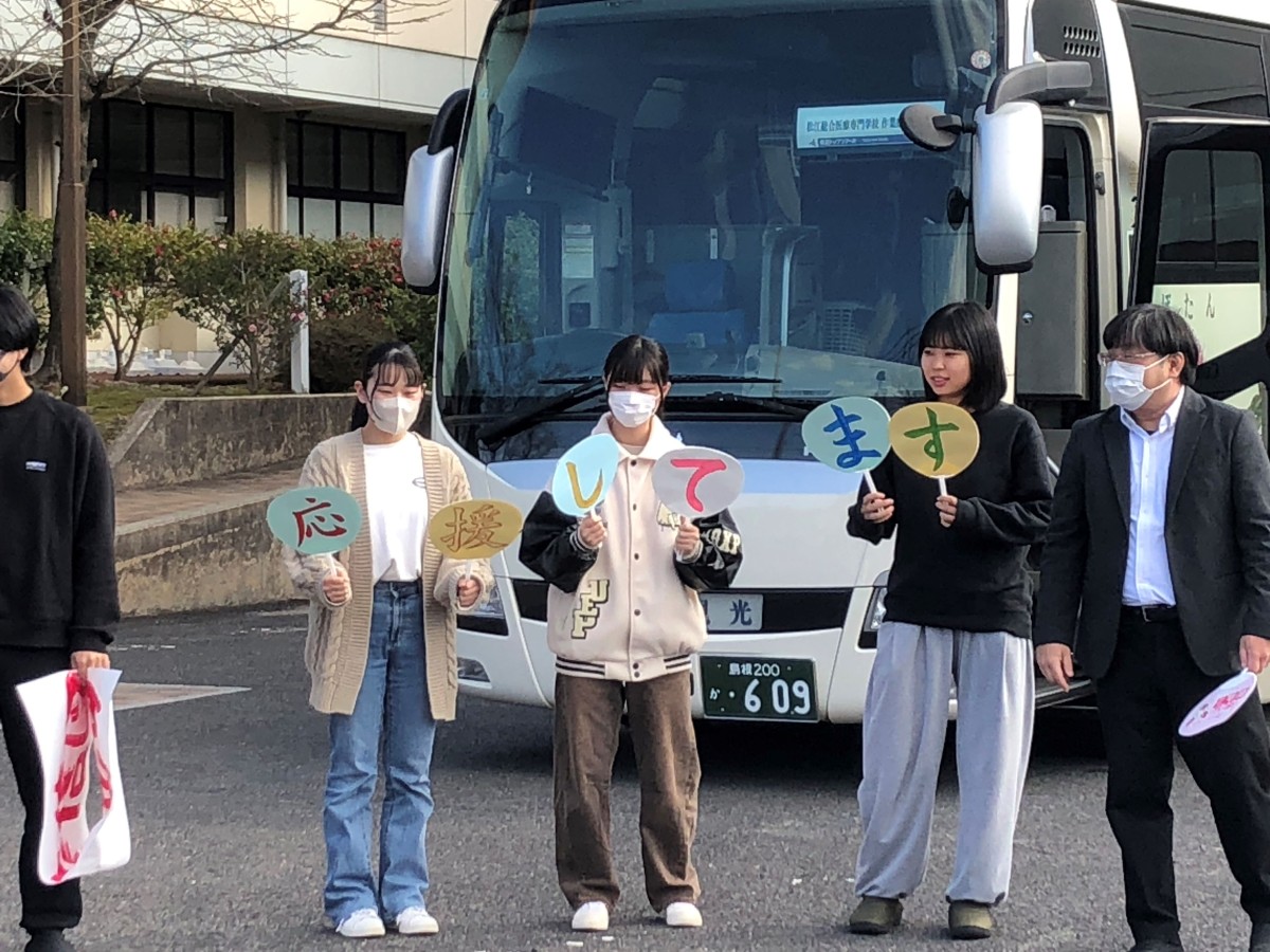 「これまで、全員で合格を目指して頑張ってきた成果を発揮できるよう精一杯頑張ります。」と力強く挨拶し、リラックスした表情でバスに乗り込みました。